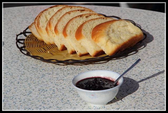 清晨饱食了一顿难忘的特色华俄后裔早餐:俄罗斯列巴劲道十足回味甘甜,自制蓝莓酱酸甜可口,香醇的牛奶齿颊留香,最最可贵的是这一切都是纯天然无污染的哦。