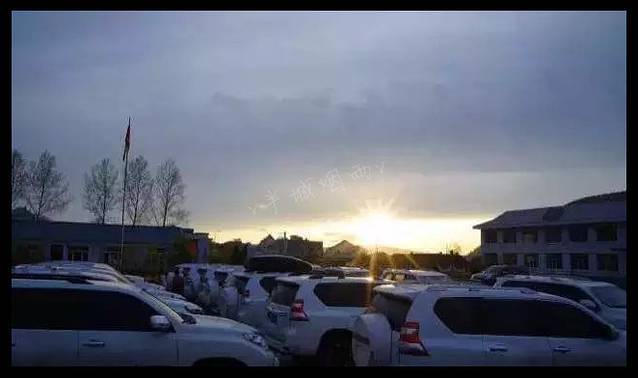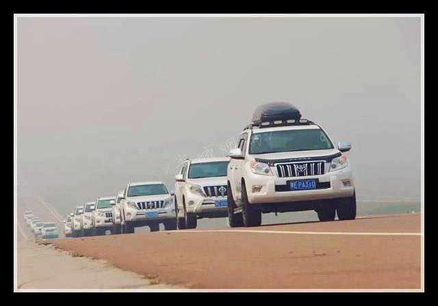 北国的黎明总是来的更早些,我惦记着心中的草原,一夜辗转难寐,第一个下楼吃了早餐,刚推开酒店大门,就遇到了另一场华丽丽的惊喜——二十台霸道越野车整齐的停靠在路旁,像等待检阅的士兵,虽然出发之前就已经了解到这次旅行不同以往,是越野穿越之旅,但是这浩大的气势,霸气的视觉冲击还是狠狠的震慑了我。