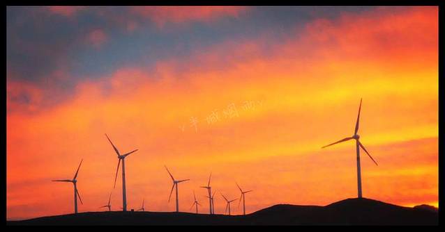车队即将驶入满洲里市区,无数巨大的风车静静的伫立在公路两侧的山间,在晚霞的映衬下安详静谧,我几乎以为自己竟来到了“风车之国”。