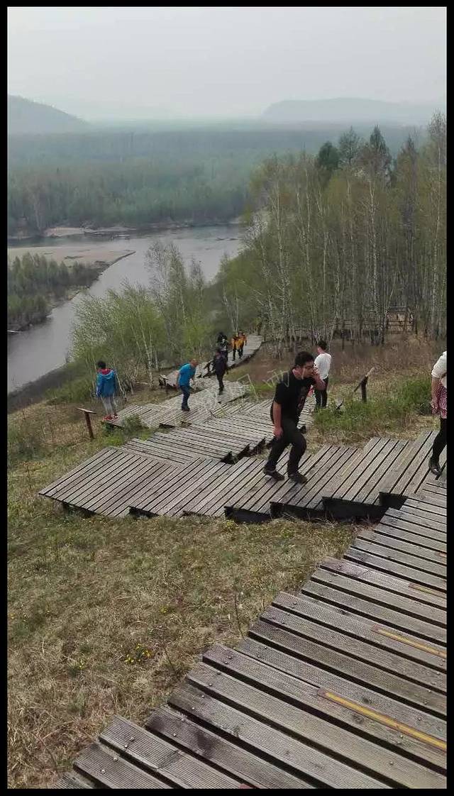 沿着盘旋的栈道来到顶端,忽然间视线开阔,俯瞰着脚下寂静的额尔古纳河,天地仿佛已凝固,时间仿佛已停滞。但你凝神望去,会发现那平静无波的表面下,是无声而坚定地流动,“逝者如斯夫,不舍昼夜”,天地时间之壮美,令人叹服。