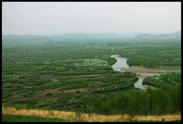 根河之水在繁茂灌丛和杨柳浓荫中左旋右转,隐蔽流淌,以其九曲十八湾的优美运行折线,勾画出一个又一个漂亮的绿洲和令人心驰神往的鸡心岛,根河水像一枝水彩笔,将巨大的河谷描绘成如诗如歌的绿色画廊,然后恋恋不舍流向远方。