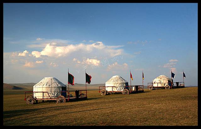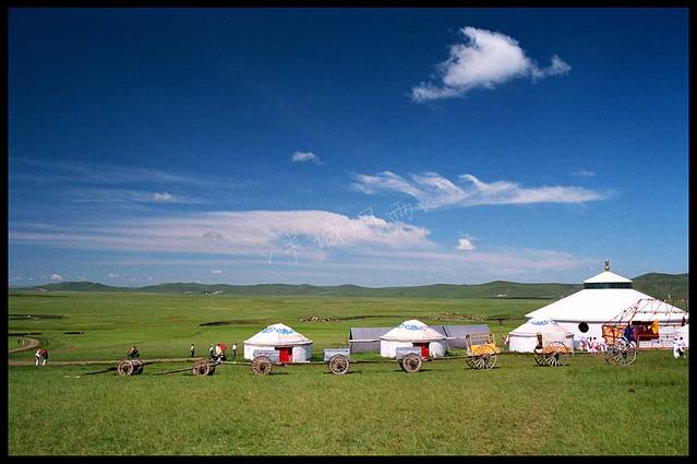 阳光下的勒勒车,它是牧人企盼牲畜繁殖的福音、它装载着牧民们的幸福和吉祥。游牧一曲悠远的牧歌,长长的勒勒车队昭示着蒙古人的企盼和幸福。