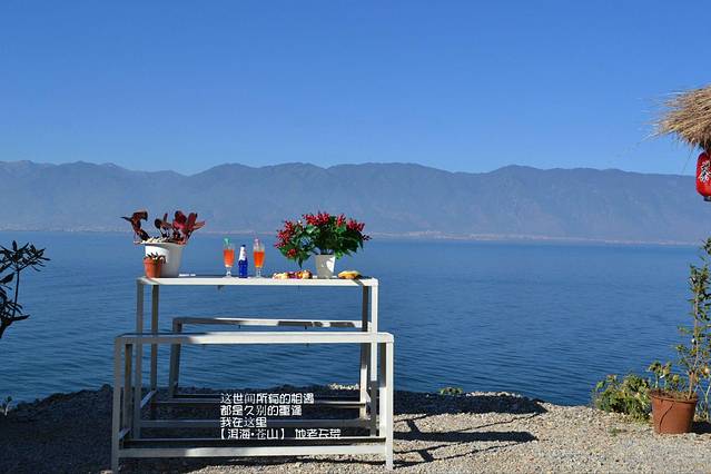洱海边有很多烧烤摊,但是胜在美好的环境,蓝色的海水配着白色的桌椅,还有很多好看的装饰,真是超级有味呀