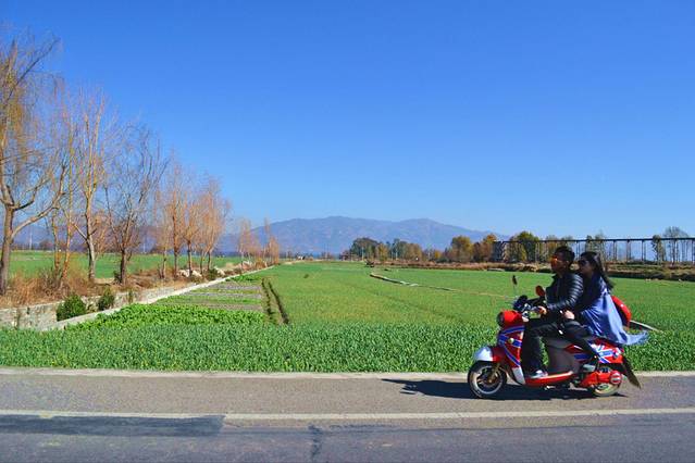 D3租一辆电动车,去附近的大建旁村(海地生活在大建旁村),绕着洱海骑行