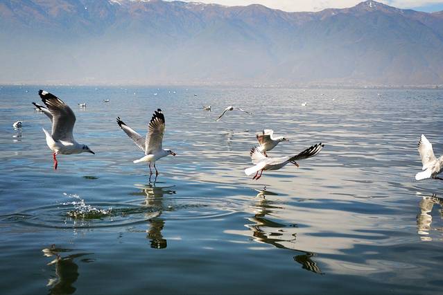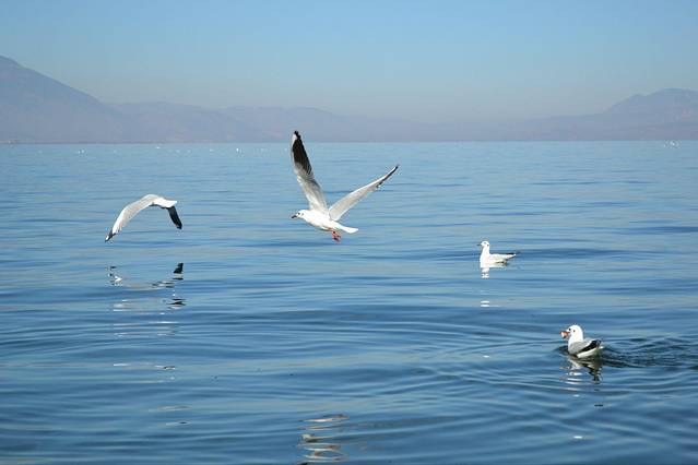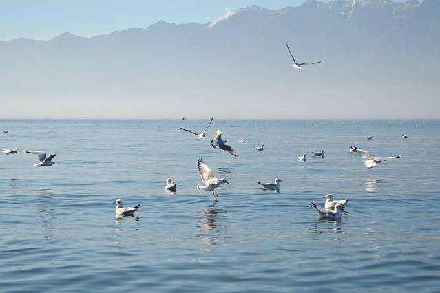 要坐船到湖心一点的地方才会看到大群的海鸥哦