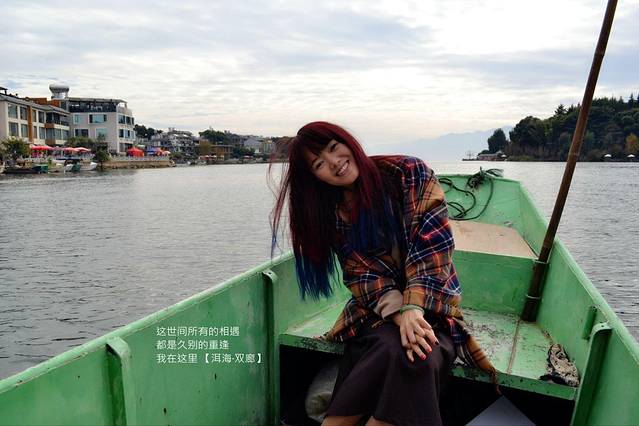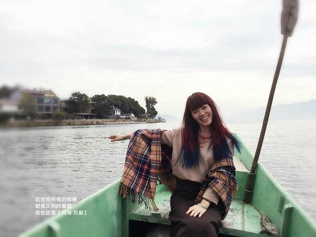 晃荡着就晃到了洱海边,想来也没啥事,所以就准备泛舟洱海吧~~~50元/人。大概1小时,如果要上南诏风情岛需要额外买门票,据说很不好玩,所以我们就远观了下,划船的阿姨会划到大建旁村的海地生活,顺便上去玩玩~~