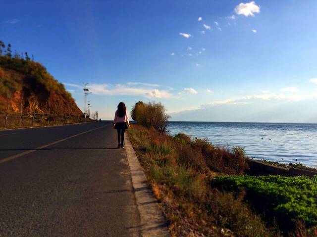 今天天气晴朗,整个洱海都是蔚蓝蔚蓝的,比前两天看到的美很多,所以我们在车上坐着坐着就想下车来拍照,好在司机也乐意让我们这面走走停停,感受洱海的美!在他们心里其实也很希望我们在洱海玩的开心,所以内心觉得特别温暖