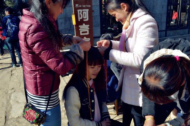 出发之前去编了彩色的小辫子,敖大叔为了配合我也编了个小辫子,超级可爱啊