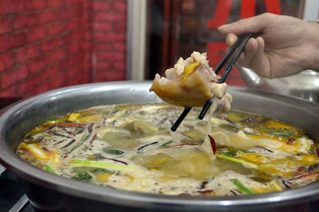 在大理古城瞎逛一圈后,看到一家名为:“酸汤猪”的饭店,我纳闷这是啥玩意,敖大叔笑话了我老半天说:人家是酸汤猪脚[汗]!再绕一圈又来到这家店,于是就决定吃晚饭了!