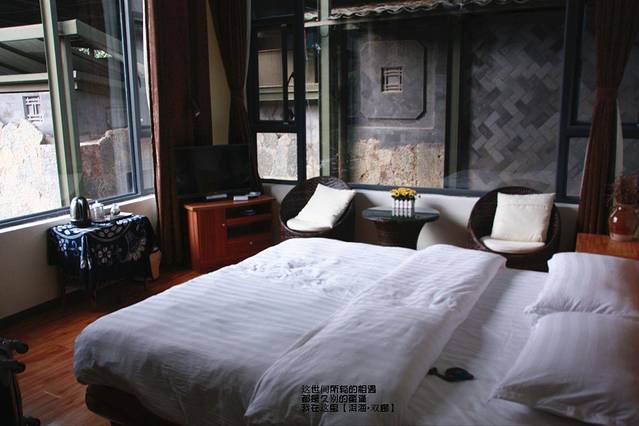 双廊有很多很多客栈,这种节假日知名的什么海景房之类的价格都飚到800+像海地这种更是1000以上还预定不上,但是个人觉得性价比真的没那么高,海之蓝是在携程上找到的,评价挺高,价格也比较合适,所以三天都预定在他那。第一天主到了两面环海的阳台海景房,380元/晚。另外两天是普通大床,看不到海景180元/晚