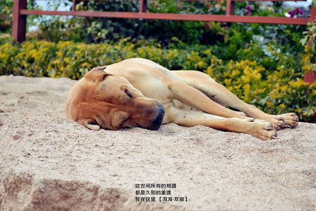 一条睡觉的狗狗,晒着太阳吹着海风~~~