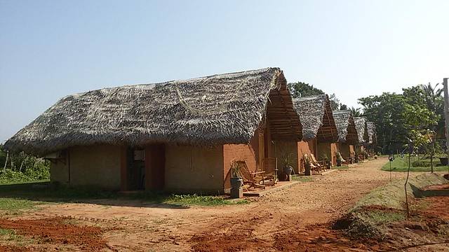 经过六七个小时的车程,我们终于抵达tissa,但是找酒店很费周折。该酒店交通不便,背包客谨慎选择。问了很多人都不知道这家酒店的具体位置,所以建议朋友们在选择酒店时一定要多花点功夫。 经过千辛万苦,我们终于到达了一个小院落,在这个院落中有多个茅草屋,一派田园风光,非常喜欢。这家酒店叫做GAGABEES。想想中国很多乡村一味地城镇化,结果反而失去了旅游人群,为什么不能将农村的房屋稍加改造,让游客享受田园生活的同时,也能享受现代生活。如果银子多的话,我倒是建议住野生肉桂酒店(Cinnamon Wild Yala Hotel),那里距离著名的雅拉国家公园仅5分钟车程,不进公园的同伴也能在酒店里看到野鹿或者野猪在房间门口徘徊寻食。