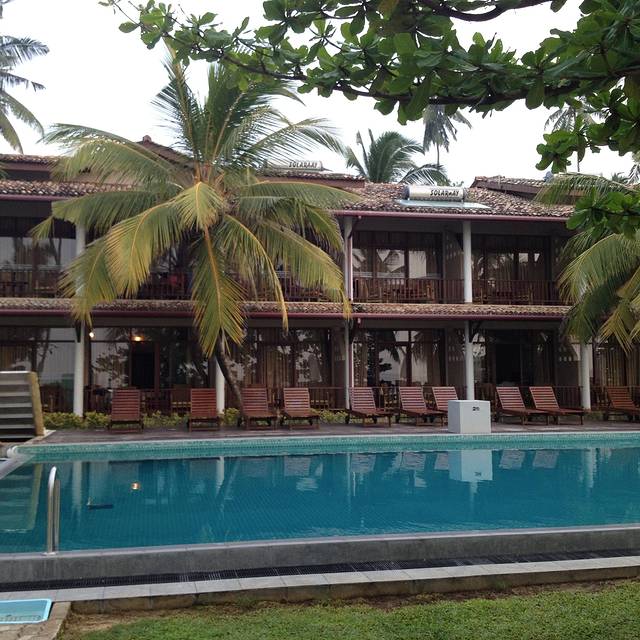 在斯里兰卡,我们住的最高级的酒店莫过于此了,出门就是沙滩,酒店里就有游泳池,吃着饭看着大海,在酒店里看到松鼠、小螃蟹。缺点是他们工作效率太慢,办入住用了半个小时,要个枕头半个小时以后都没有人理我。我们要的是最便宜的房间,416元,没有空调,实在太难受了,又潮又热,根本无法入睡,下次我去一定要住海景房,600多就600多,这价钱还双早、双晚很合算的,现在好好工作,赚出酒店钱。