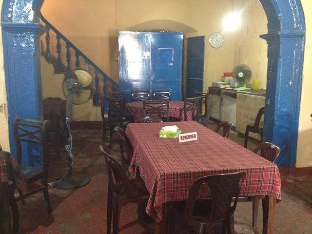 Nalin 接到我们之后,告诉我们他的家就在尼甘布,我们愿不愿意去喝一杯茶?为了了解斯里兰卡当地人的生活,我们怀着一种复杂的感情同意了,这样就先来到了他的家,但是在他家没有拍照,为了保护他的个人隐私,我也不想把他的孩子和爱人的照片暴露在众人面前。那个家有一个小院子,种了各种各样的树,家里摆设很简单,他的父母都出来迎接我们,我们实在有点受宠若惊。在Nalin家里喝了茶,我们缓和了一下坐飞机多个小时的疲惫,开始我们在斯里兰卡的第一天。这一天非常悠闲,去看看教堂,然后开车赶往科伦坡海洋酒店,在路上一边看风景,一边感受异国风情。只是我们光顾看风景了,没顾上照相,这是中午在尼甘布吃pizza时照的