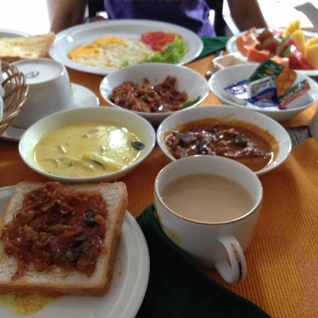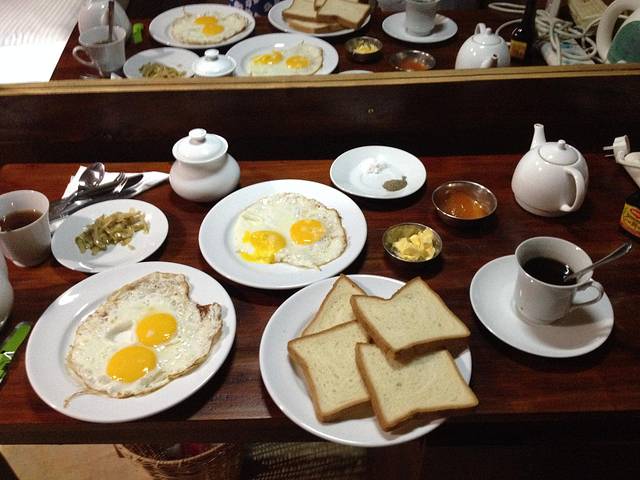 再吃最后一顿兰卡风味的早餐和西式早餐,有红茶,有煎蛋,有咖喱,有面包,当然还有没上的水果。