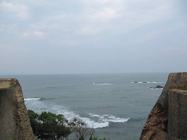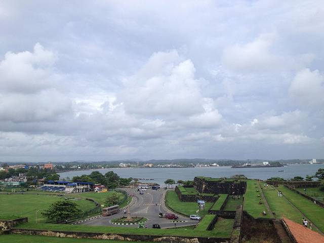 加勒古堡终于到了,我们在古堡广场上买了椰子,实在便宜,只有50rs,相当于人民币2.5元,我前两天在团结湖公园喝的要13块钱呢。解渴后,我们爬上城墙。眺望加勒古城,心旷神怡。