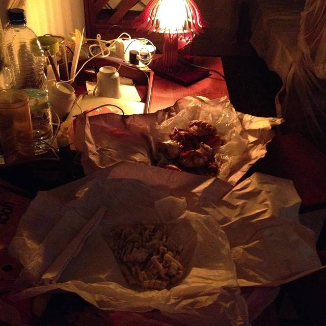 Nalin和我本想在河边一个小餐馆自己加工买好的海鲜,然后再吃一些兰卡特色饭菜,但是我的同伴出来一天实在感到疲惫,所以我们就把加工好的海鲜带回酒店,真的很香。