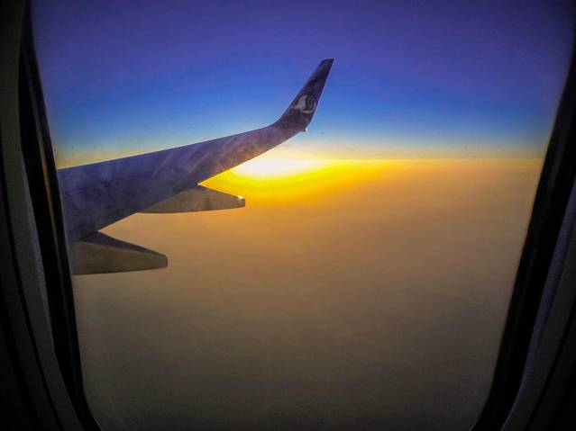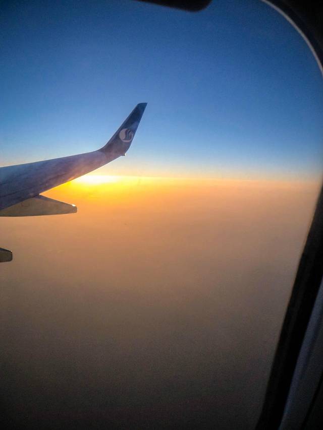 透过机舱的窗户,我们依旧能目睹到几万米高空中的美景,一片蓝天,衬托出一抹正午的余晖。人生在很多地方可以遇见很多人,很多事,很多风景。如果你我都热爱着生活,生活将给予你一片光亮。