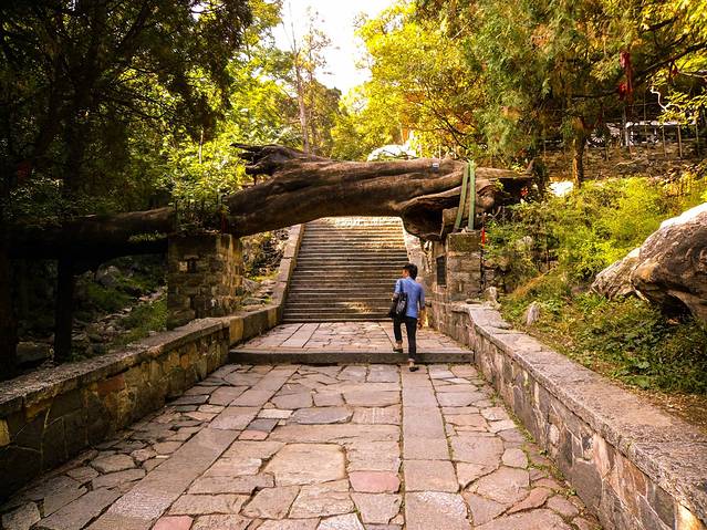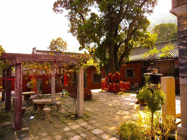 顺着石梯往上走,周遭环境相当怡人,葱葱树木与各种岩石交替环绕,感觉这些是千百年来见证了这里风吹雨打,时光交替的产物。