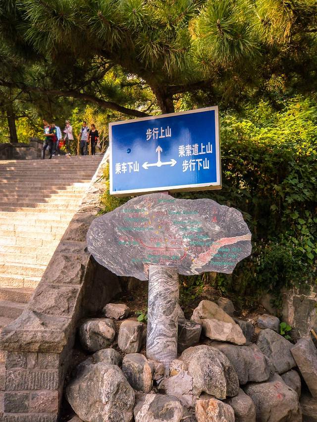 按照指示牌,毫无疑问,我们肯定是选择步行上山,如此怡人的风景,就需要我们沿路慢慢欣赏,所谓一步一景,一景一惊奇。我希望通过我们步行去实践我们用脚步丈量生命的决心。我相信,这一次泰山之行除收获到自然景色以外,更多的是内心的一种开阔情怀。