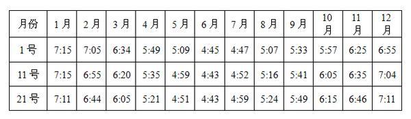 附上一张泰山不同月份时候的日出时间表,希望对各位想观看日出的伙伴有所帮助。