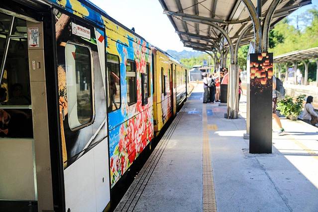 1992年4月,平溪线被台铁选定为“观光铁道路线”,自三貂岭起至菁桐全长约13公里,停靠大华、十分、望古、岭脚、平溪、菁桐等六站,沿途经过浑然天成的山间水畔、经过高悬的铁桥、经过漆黑的隧道,更经过民宅和屋顶,而当时的煤矿遗址,反而成为今日独特的煤乡风景。