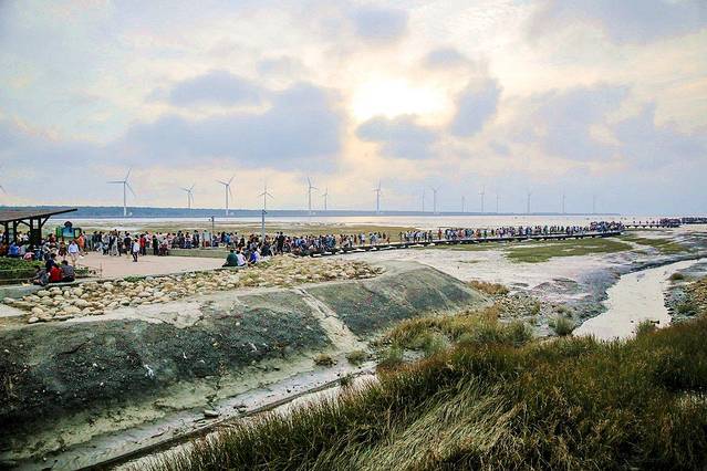 高美湿地是近来新兴的火爆景点,尤其是它的夕阳之美,吸引了大批旅行者赶在下午四、五点这个时间前来。但如果当天是阴天,这里就不是文艺湿地而只是普通湿地而已了,可以看当天天气好不好再决定要不要去。高美湿地这种火爆程度让本地人都觉得匪夷所思,萧敬腾的MV《收藏》烧钢琴的经典桥段就是在此拍摄(当然他也因此被罚很多钱),使这个台湾西海岸很常见的湿地一炮而红。