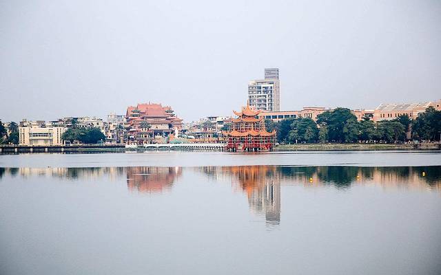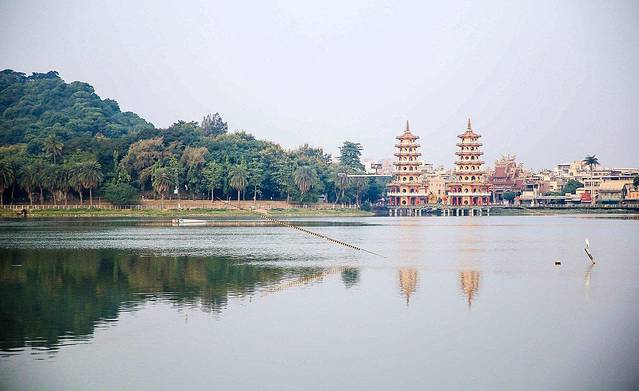 莲池潭(旧称莲花潭)位于台湾高雄市半屏山之南,龟山之北,是高雄市左营区区内最大的湖泊,潭面面积约42公顷,源于高屏溪。1686年凤山知县杨芳声建文庙时, 以莲池潭为泮池,在池中栽植莲花点缀。每值炎夏,荷花盛开,清香四溢,乃有“莲池潭”之名,而“泮水荷香”列为凤山