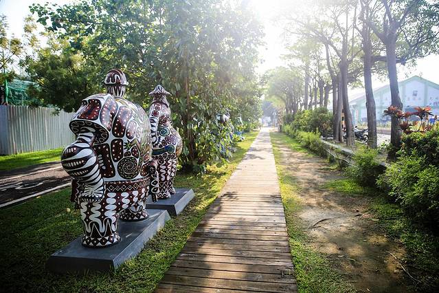 驳二”是指第二号接驳码头,原本是普通的港口仓库用于存放鱼粉和糖,但年久失修,2000年高雄市政府对其进行了改建,形成了如今高雄市内知名的艺术展示区。