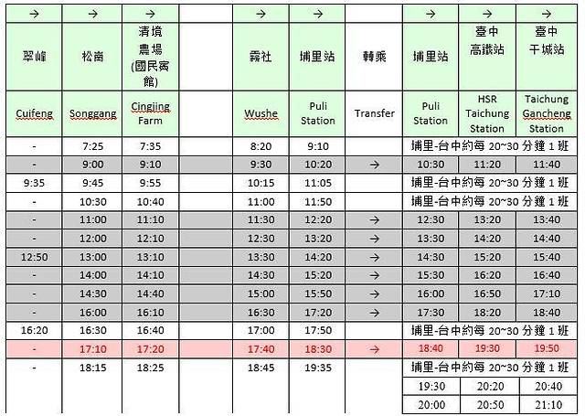 第三步,搭乘松岗-埔里(12:10走,13:20到;更早的是11:10发车,这样更好),再埔里-台中火车站(13:30走,14:20到);