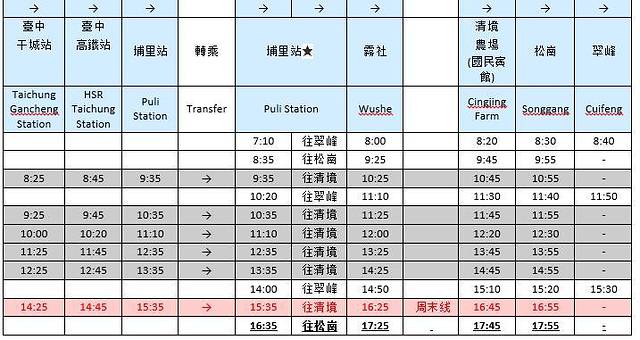 从台中去清境农场的时刻表