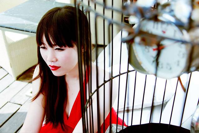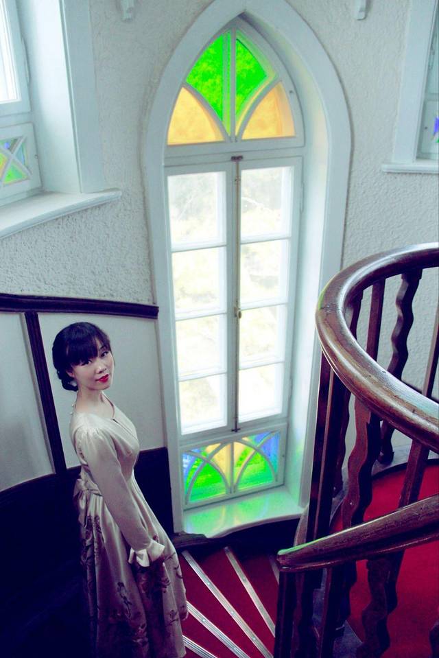 复古的发型,长及脚踝的裙摆,配合着古堡似的建筑,竟有游客误以为是楼里陈列的假人。