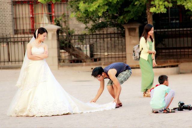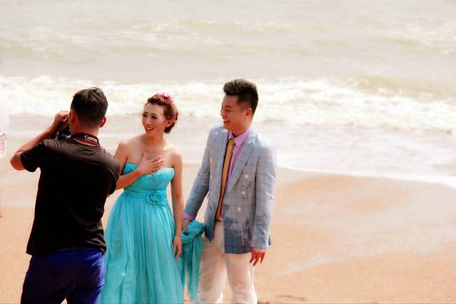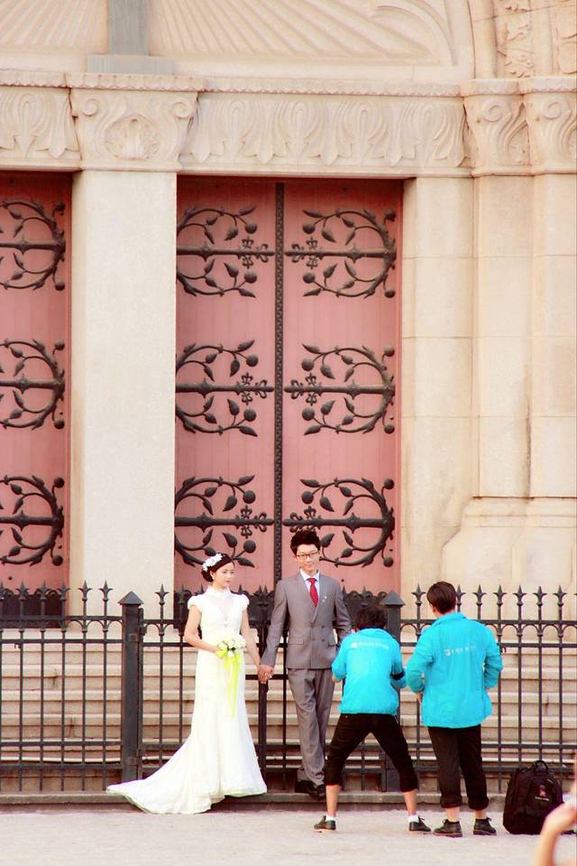 奥帆中心、太平角公园以及浙江路上的大教堂,所到的三个地点无不是当地拍摄婚纱照的热门中心,全是组团儿去拍照的,蔚为壮观。