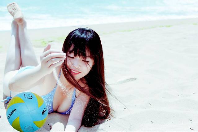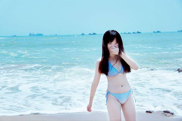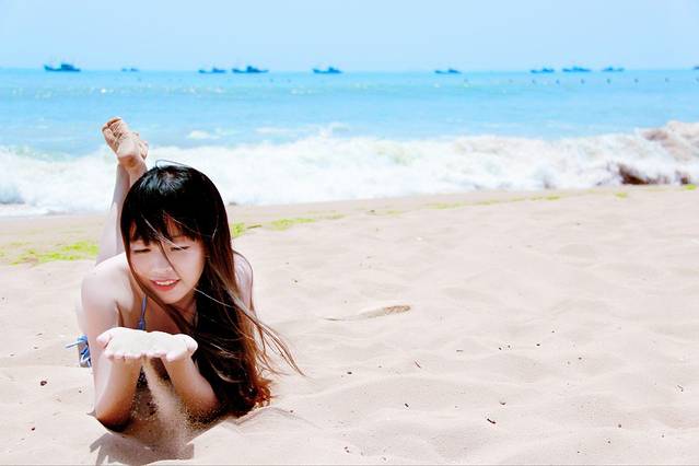 收费的浴场,海边漂着成片的绿藻,人算不得太多,要选一处干净点儿的沙滩也确实有点儿难度。