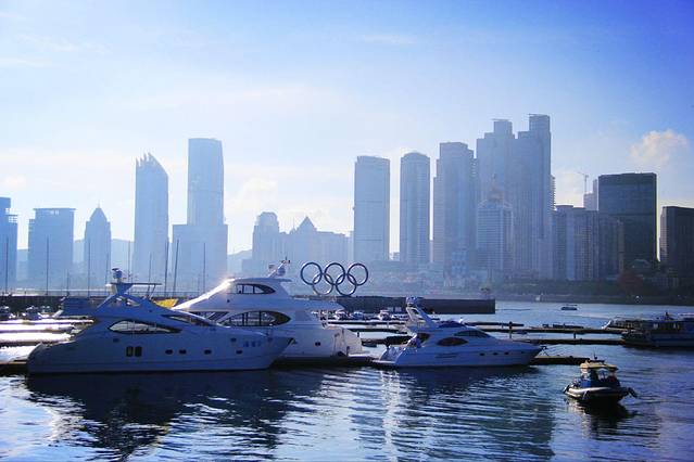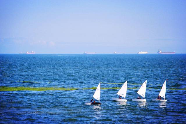 出片的好地方,可惜没能下到帆船上拍照,看阵势,也是青岛人民拍摄婚纱照的主要场所之一。