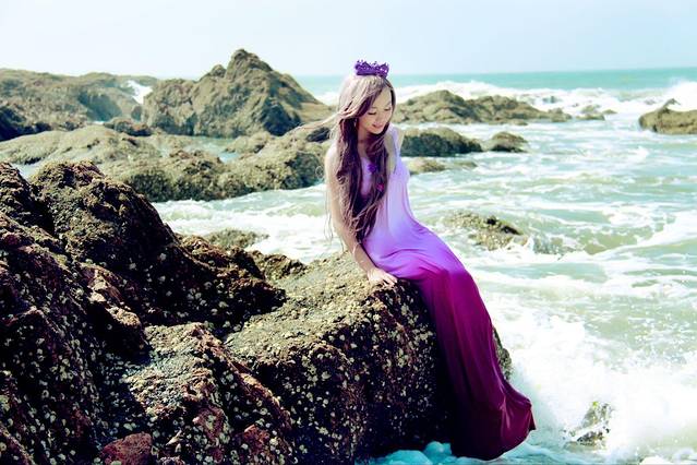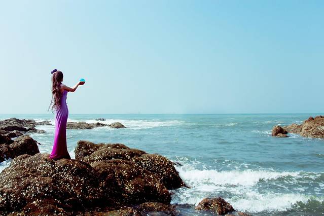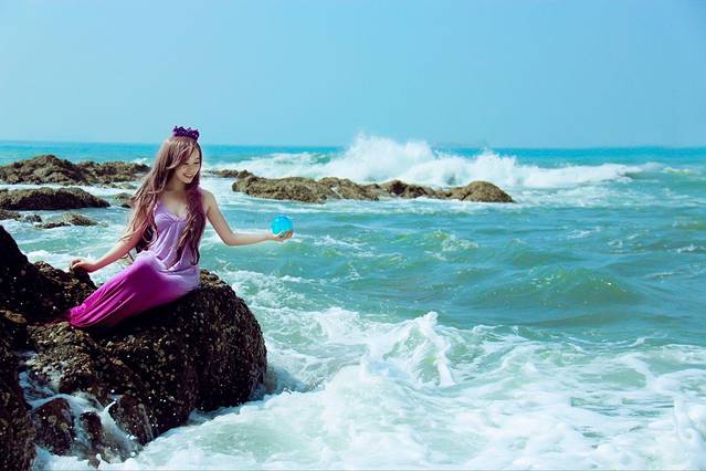 一大早奔赴鲁迅公园,赶上涨潮,于是,就悲催了。模特在从一块礁石上移动到另一块礁石上的时候,华丽丽的被浪拍了下来,整条小腿被礁石划伤,不得不提前结束了这里的拍摄。事后,我们说是不是因为拍了美人鱼触怒了海神,才掀起这么大的风浪作为惩罚。