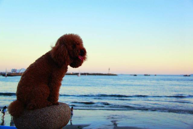 喜欢日出,也不愿错过日落,迎着海风等太阳下沉。夕阳里,狗狗礼貌地配合着我的镜头友情出现。