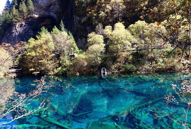 不过一上人行栈道,就知道人真的不是一般的多。但是下面的照片我实在是分不清哪里是哪里了,所以我只能告诉你这一系列的照片属于日则沟,只能说又怪我啰,然而怪我也并没有什么用,反正我是分不出来了,我试图分过,但是失败了。所以我分不清的部分,大家就静静看图吧。
