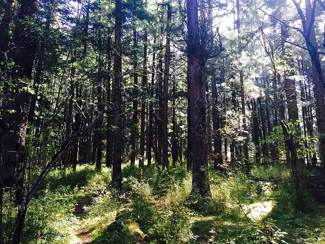 由于怕在有限的时间里我们不能走到山顶,所以一进门,我们就选择了右边的上山通道,观景通道是在左边,虽然不是观景通道,但是经典特色的景点还是全部囊括了的,所以不用担心错过美景。一路上,都是参天的大树,笔直笔直的,还有小松鼠在蹦跶,虽然没有相机,但是幸运的是手机也抓拍到了一张。