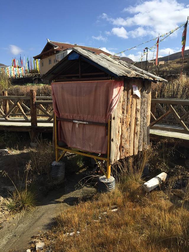 在藏寨中,每一户都会有一个这样修建在水上的小房子,里面是一个转经筒,借用流动的水的力量转动转经筒,也叫作水转经。