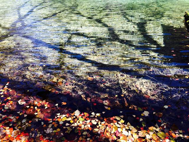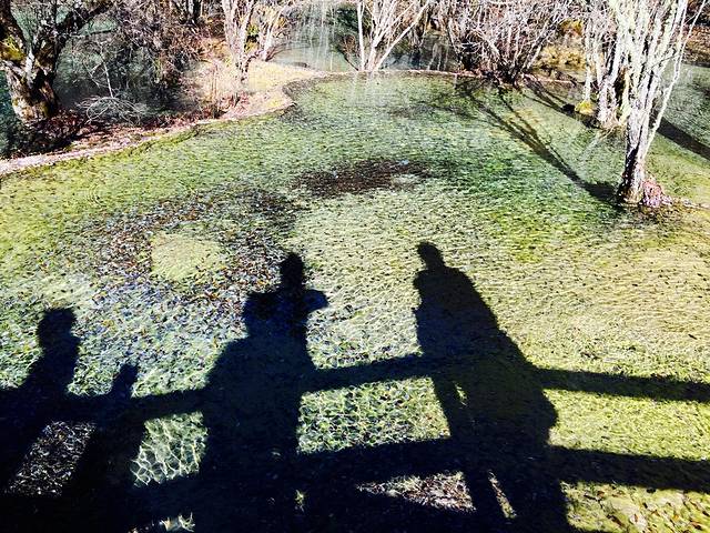 一路上的池子,都是清澈见底,小树的倒影摇摇曳曳,阳光闪着零零碎碎的光,如果不是钙化池,估计我会捧一捧清水喝下去了。