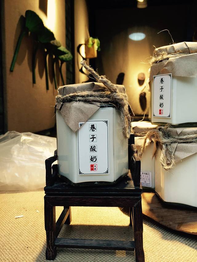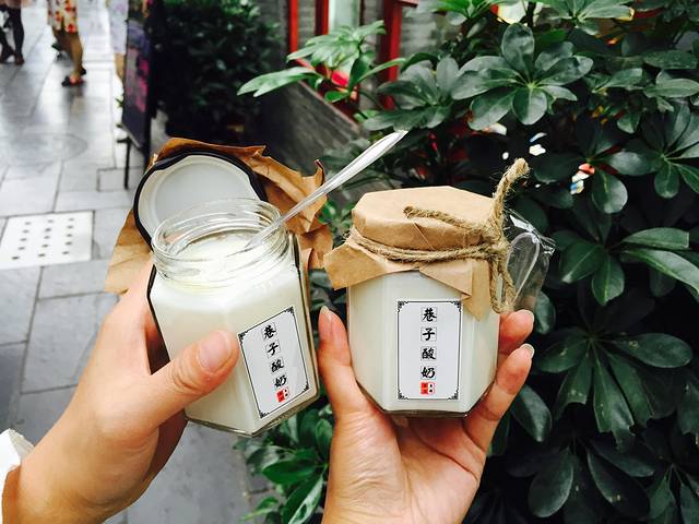 成都的酸奶也是非常多的,不论是锦里还是宽窄巷子,在宽窄巷子看着这么可爱的包装,原谅我与老大都是颜控,所以,不管味道如何,冲着这个瓶子,我们都要立马对老板说来两个巷子酸奶.......
