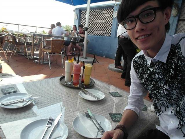 这次坐在最高的楼层,即使下午3点多,阳光猛烈,但是海风吹来,非常舒适。