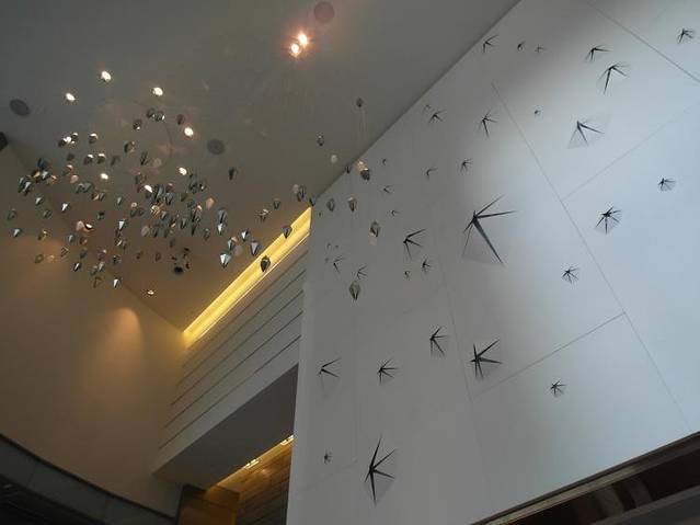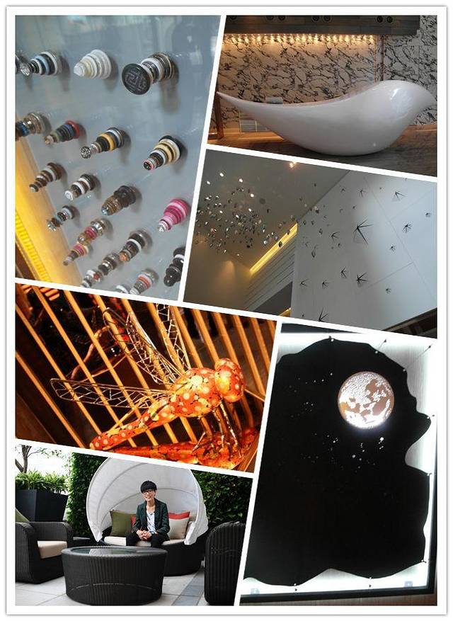前台的流线型小鸟、天花板繁星灯饰、还有很多不同的艺术品都很吸引,