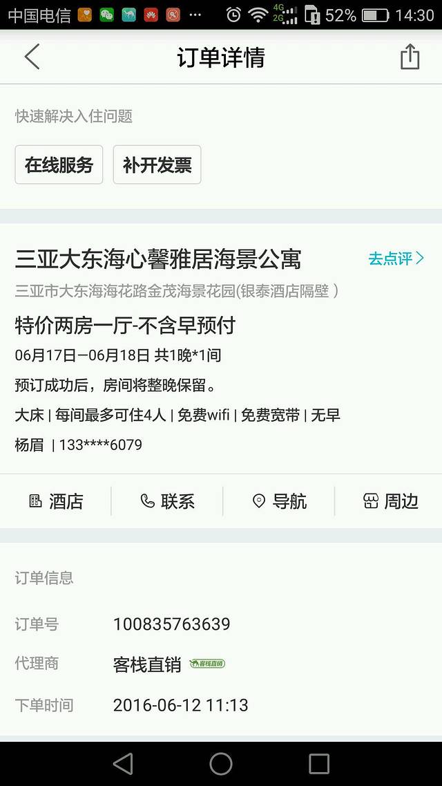 海航HU7646,4人票价共2720元,网上选的靠窗位置。
