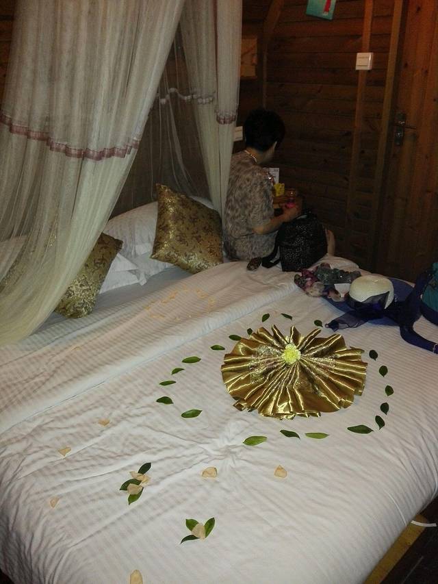 选择酒店费了一番功夫,只想住在皇后湾这边的客栈出门见海,没考虑过村子里的客栈,虽然只有几步之遥,后海湾也没考虑,有码头在,景色一定不如皇后湾这边,而且海腥味重。。网上各家客栈评价不一,担心住宿条件不合心意,决定实地考察,实在不行就只有去林旺镇了。结果只看了第一家千年红主题客栈,就立刻决定住下了。客栈有40多间客房,订了两间双床海景房,220一间,住两晚共880元,比网上订的价格便宜。我奇怪千年红网上评分才3.9,很低啊,不是亲自来的,我是不会在网上定的。原来老板换人了,接手不到一年,主要接团队,网上时常关闭的。还好,我们住的这两天没有团队,要不可热闹了!
