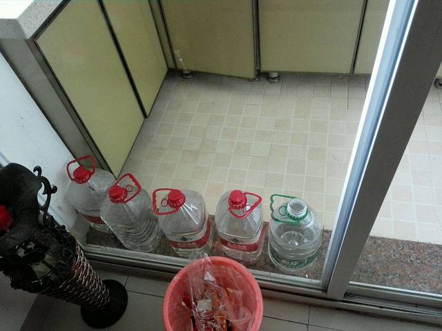 补拍公寓,到处都是这样的水桶,可能是预防停水吧!