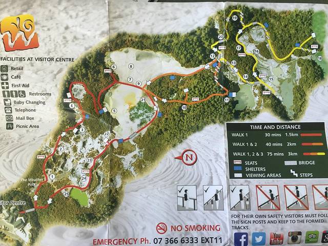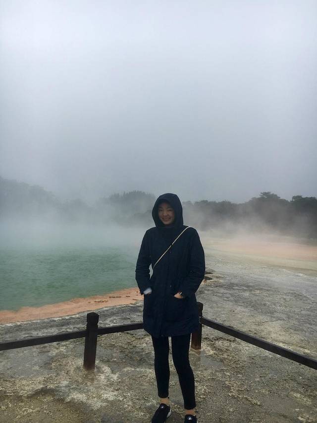 第三个是地热公园,由三个步道相接而成,全程下来须得75分钟,我们因为跟着园内的导游慢慢的转悠着,又受时间限制,并没有将公园的景致看全了。不过,那最为精华的地热湖倒是实在别致,湖里的水汽,加之那日的小雨,无风时云里雾里,有风时那翠绿橘红甚是夺目。