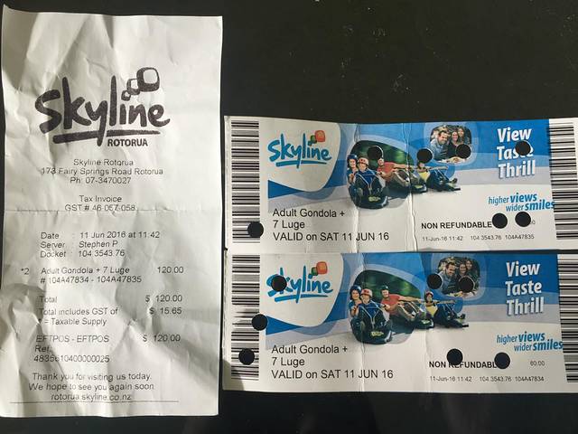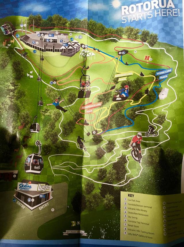 skyline是我极为推荐去的!售票大厅在距离Rotorua市区不远的地方,我们驱车到那儿时已有不少人排队等待了,商量过后,我们选择了缆车与7次的luge(小型滑板车),半小时后我们如愿到达海拔487米的侬格塔哈山(Mt.Ngongotaha)的半山腰。欣赏了片刻一览众山小的美景后便全身心的投入玩乐中。