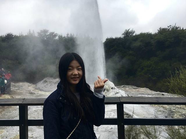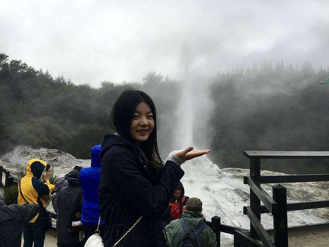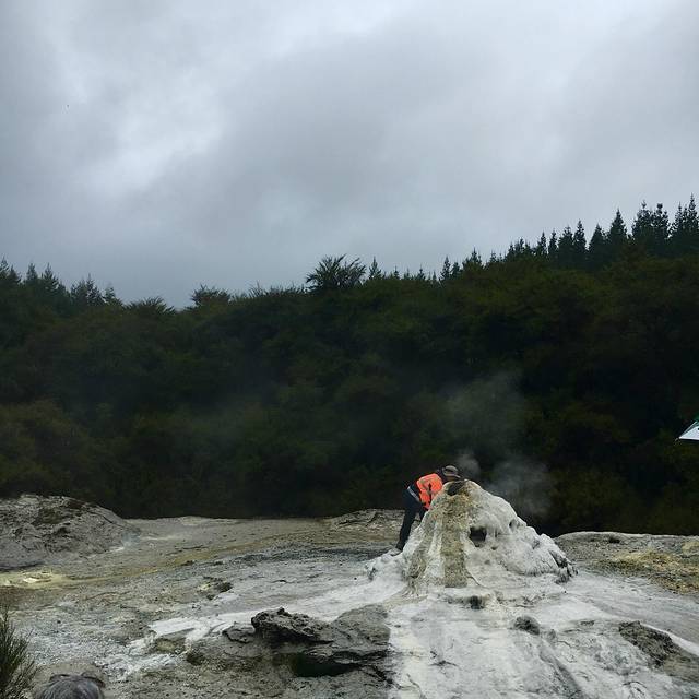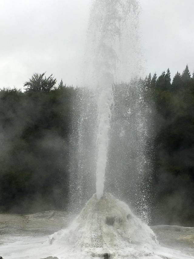 第二个是一个间歇泉,在雨中等待了半个多小时后,会有一个毛利人用英文来讲解它的原理,然后会把一袋不知名的化学物质放进洞里,不多会,就会有冒着热气的泉水向外喷出。
